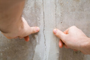Pour réparer des trous jusqu’à 9 cm de large et d’importantes fissures, vous devez les recouvrir d’une pièce en tulle de fibre de verre, autoadhésive et conçue à cet effet. Coupée au ciseau à bonne dimension pour être tendue par-dessus l’excavation, cette pièce sert de support pour un mince film d’enduit et évite de combler le vide. Elle adhère solidement sur toute surface sèche, mais laisse le temps de l’ajuster. Tendez-la bien pendant les manipulations.