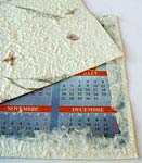 - Découpez dans le vieux calendrier une couverture de 23 cm par 30.5 et une autre de 23 cm par 33,5.