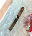 - A l’aide du cutter, pointez trois entailles au travers de l’album en vous arrangeant pour qu’elles soient recouvertes une fois le volet rabattu contre la couverture.
